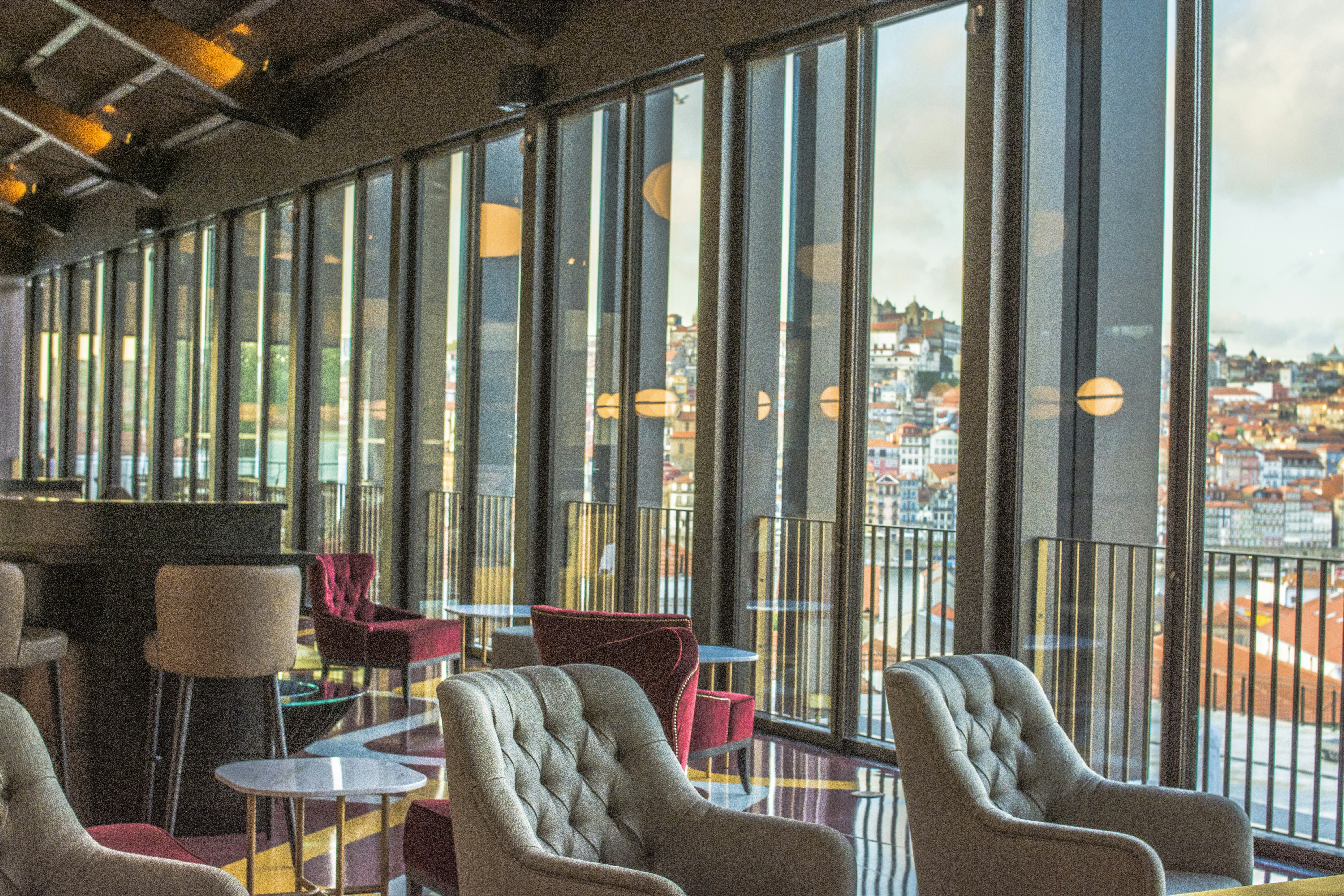 Panoramic windows allowing natural light.